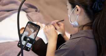 お一人で受けられる場合は、固定ツールのご用意をお願いいたします。 -